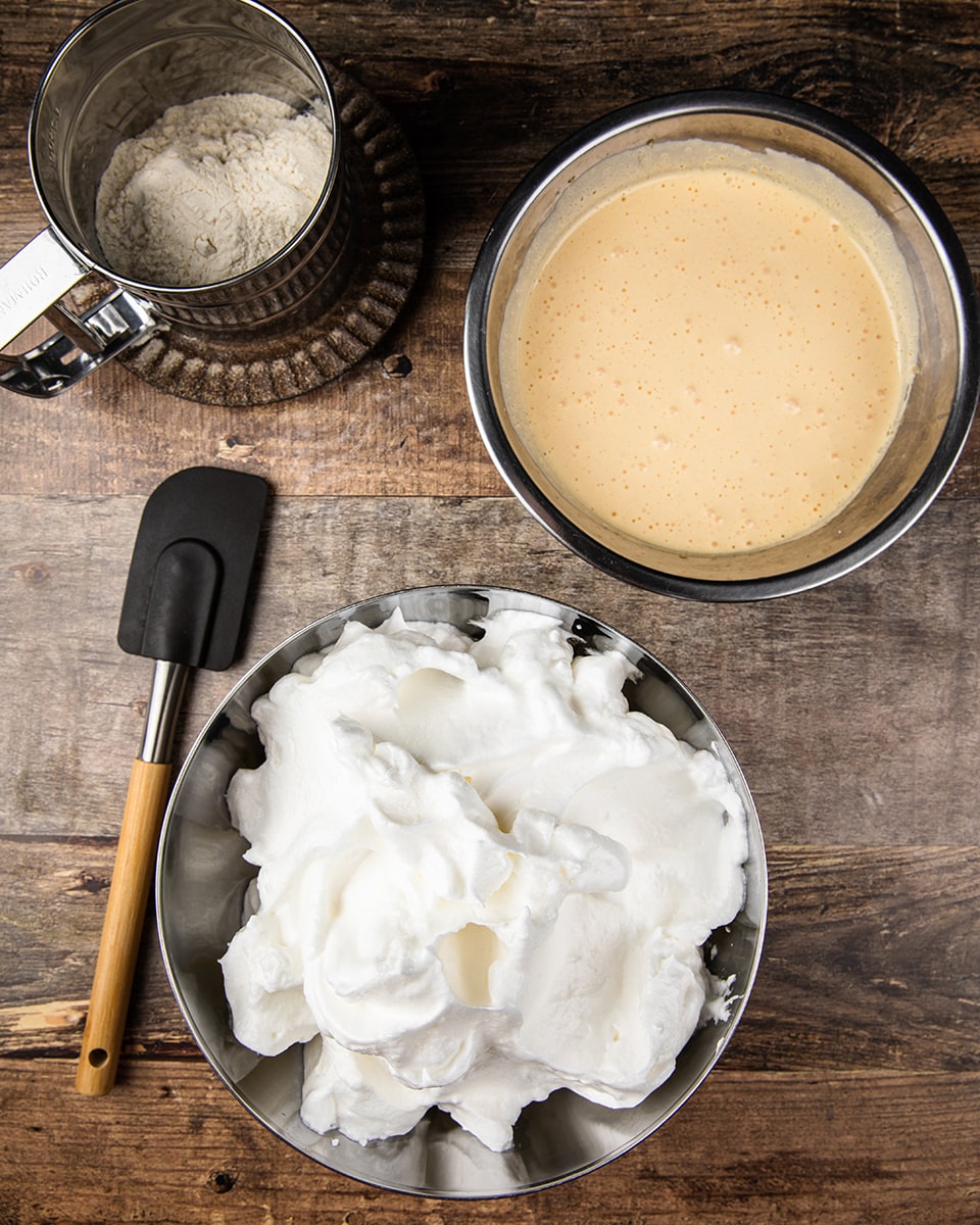 Нанесите на пергамент рисунок. Белки отделить от желтков. Белки взбить до пиков с половиной сахара. Вторую половину сахар взбить с желтками. Аккуратно ввести желтковую массу в белковую и перемешать снизу вверх. Просеянную через сито муку ввести в яичную массу и перемешать.