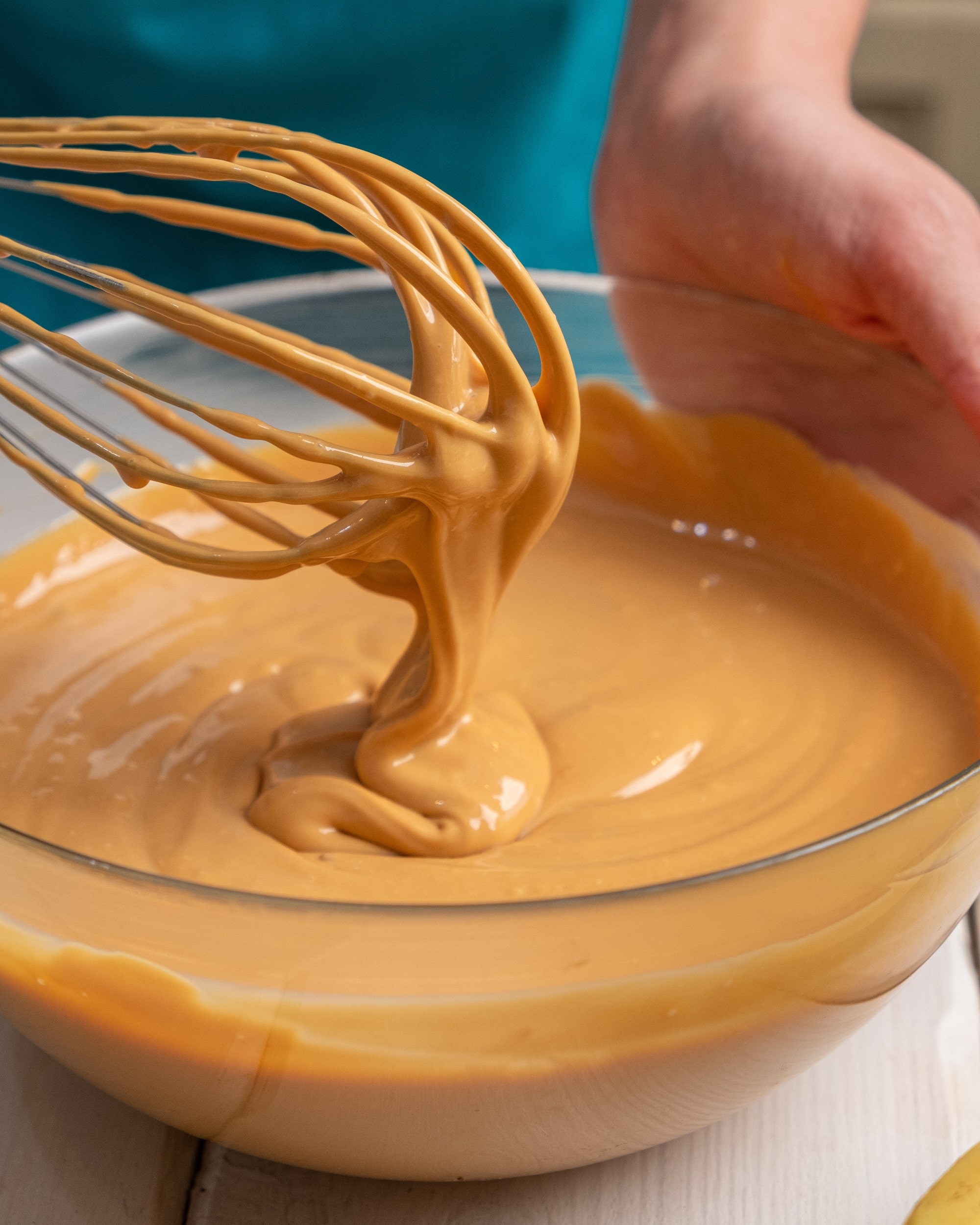 Продолжить взбивать, добавляя по 1 желтку.