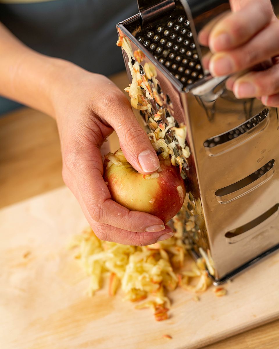 Яблоки натереть на терке. Отжать руками от сока (если яблоки слишком сочные).