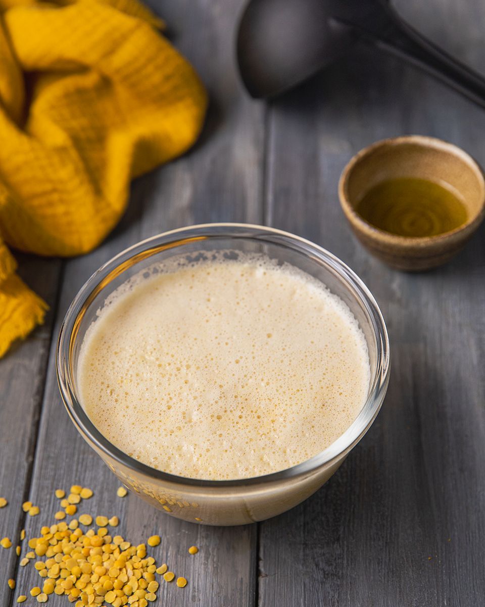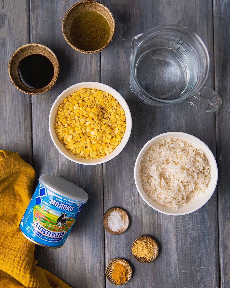 Замочить рис и чечевицу отдельно, добавив их в отдельные миски и залейте прохладной водой. Замочите не менее чем на 6 часов или на ночь. После замачивания хорошо процедите и промойте, затем перенесите рис и чечевицу в высокоскоростной блендер с солью, очищенным имбирем, порошком карри, кленовым сиропом и достаточным количеством воды, чтобы просто покрыть рис и чечевицу.