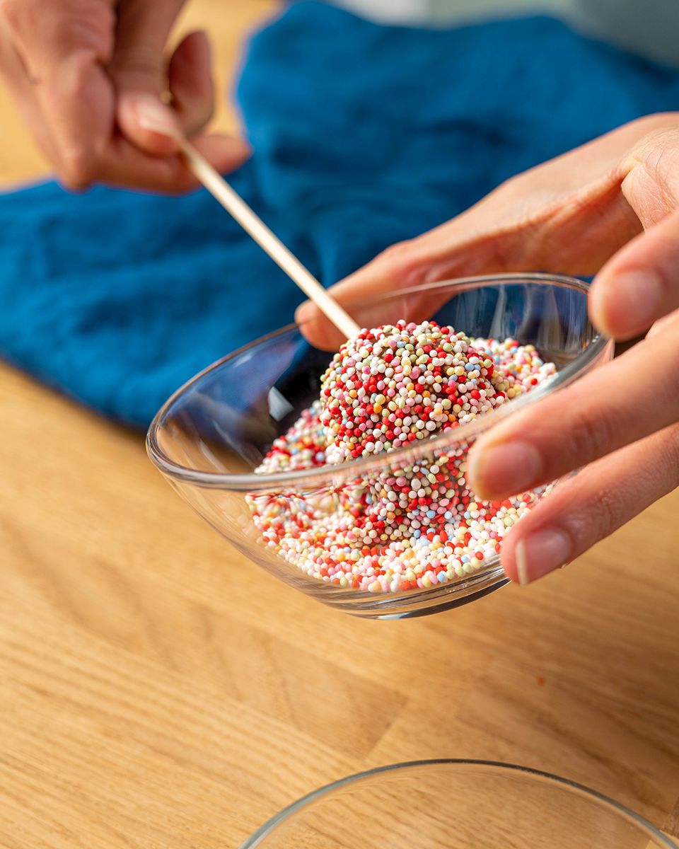 Обвалять кейк-попс в ярких посыпках. Поставить его в банку.