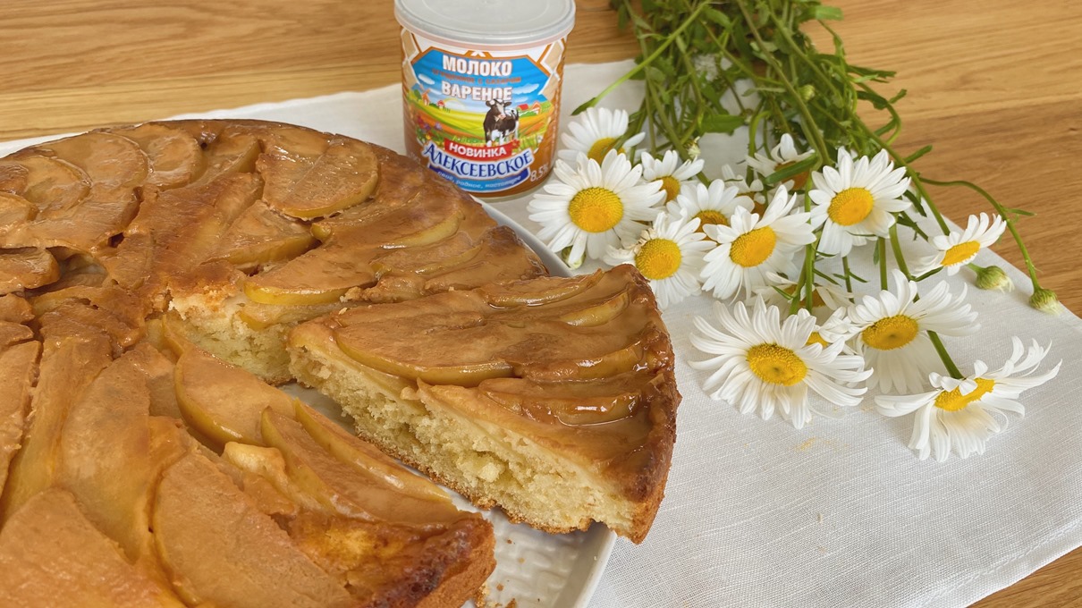 Перевернутый пирог с яблоками и вареным сгущенным молоком
