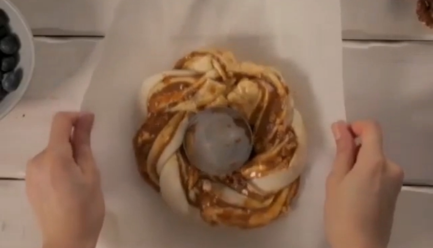 Внутрь можно положить кольцо из фольги, чтобы венок не деформировался при выпекании.