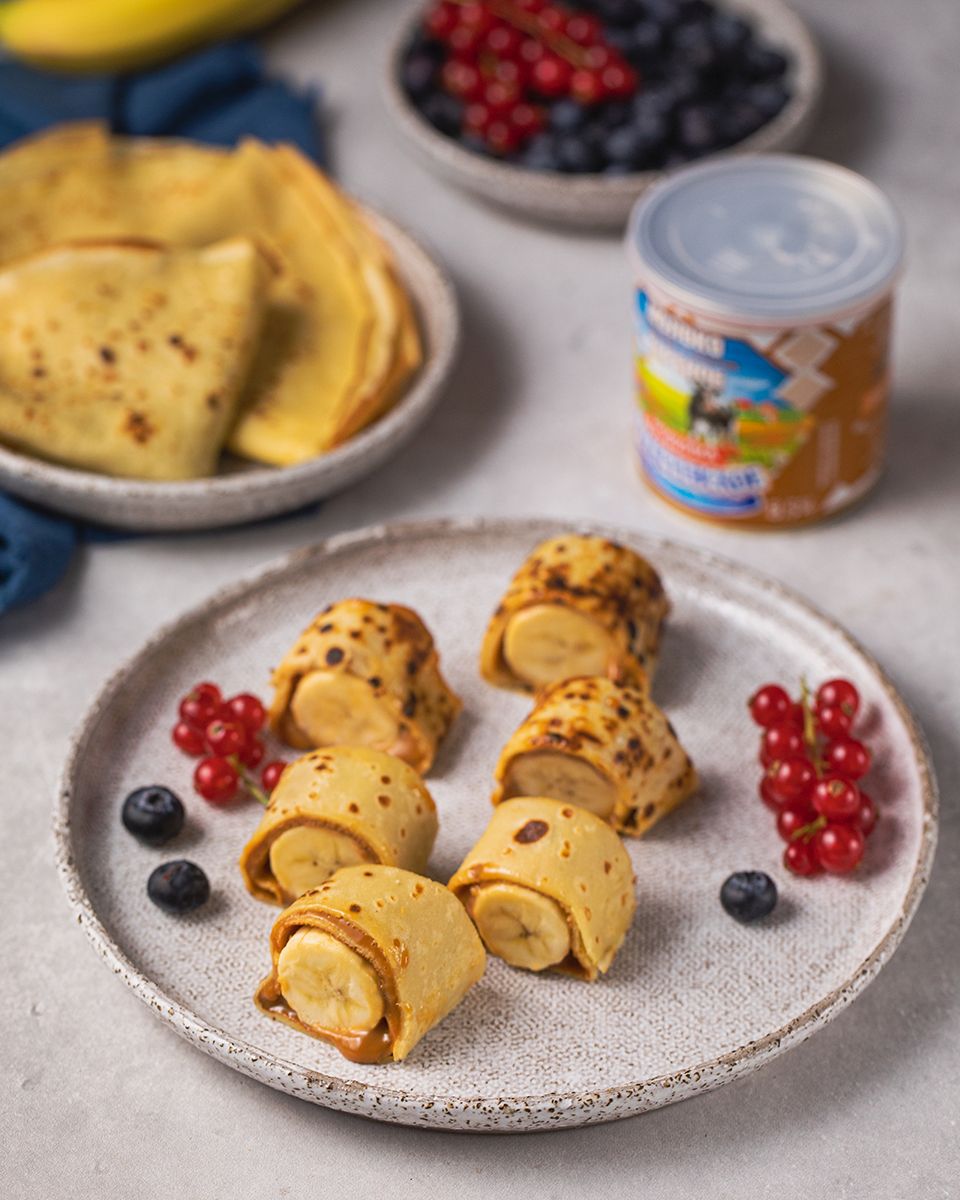 Роллы с вареным сгущенным молоком и бананом