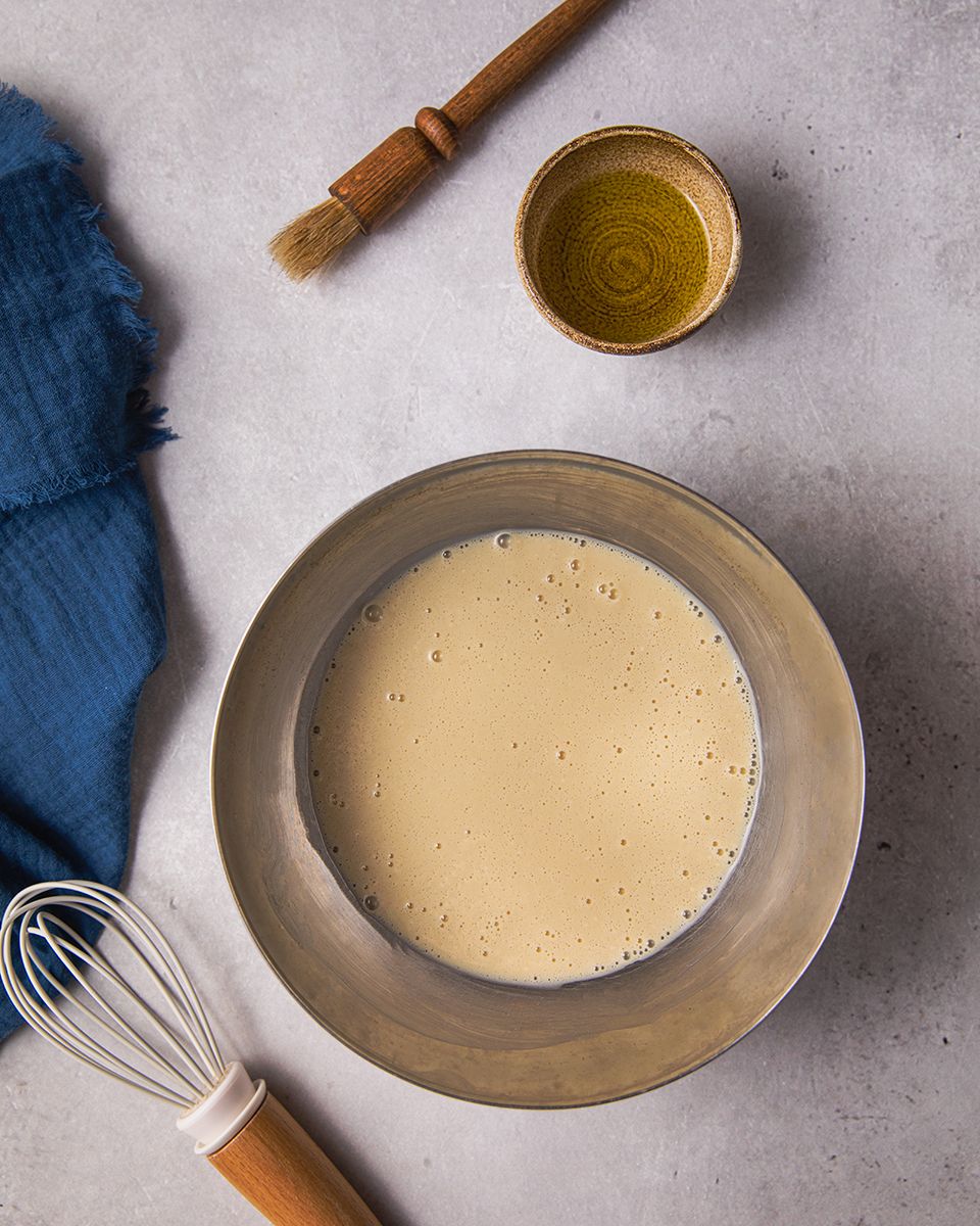Затем влить оставшиеся сливки и замесить однородное тесто. На сковороде разогреть растительное масло и жарить тонкие блинчики с двух сторон до золотистого цвета.