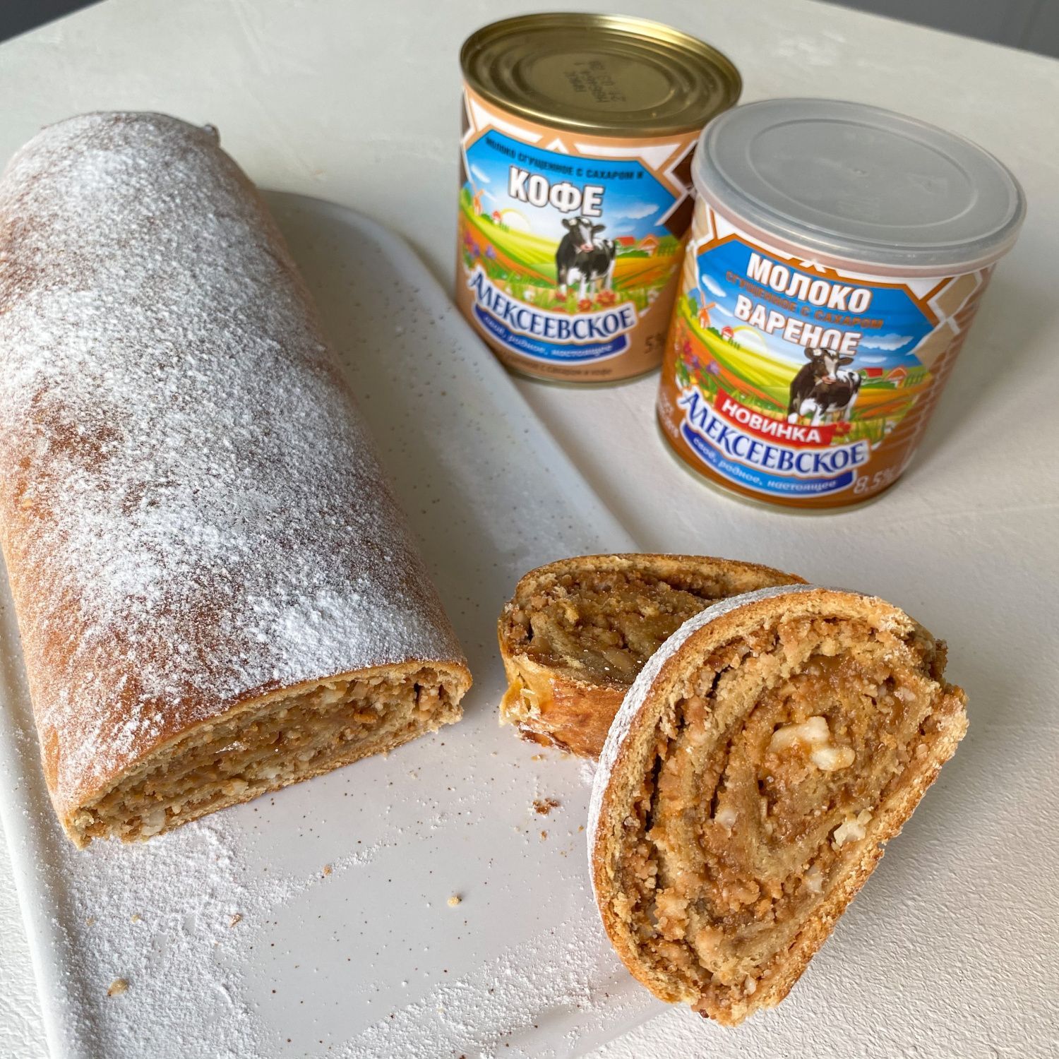 Рулет с вареным сгущенным молоком и орехами