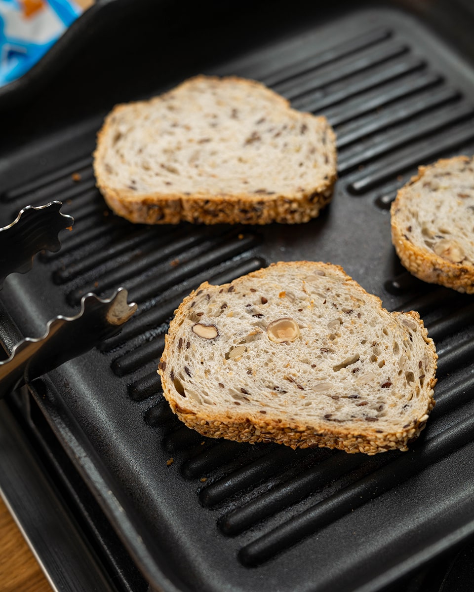 Ломтики хлеба подсушить на сковороде. Дать им остыть.